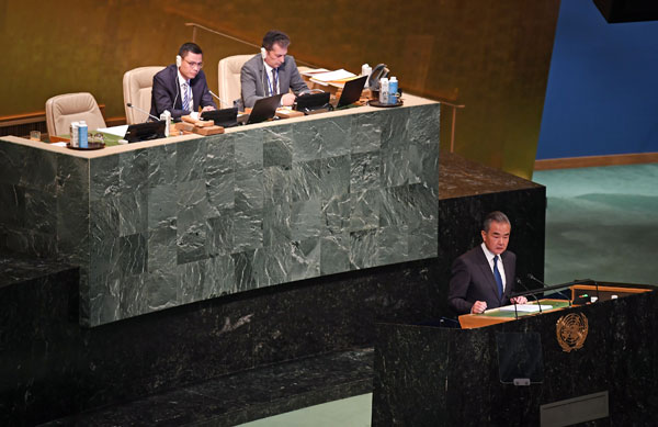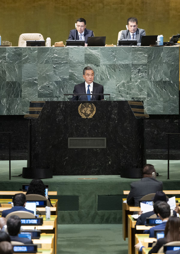 El 24 de septiembre de 2022, hora local, el consejero de Estado y ministro de Relaciones Exteriores, Wang Yi, asistió al debate general del 77.º período de sesiones de la Asamblea General de la Organización de las Naciones Unidas (ONU) en la sede de la ONU en Nueva York y pronunció un discurso titulado “Hacer todo esfuerzo por la paz y el desarrollo y asumir la responsabilidad por la solidaridad y el progreso”.