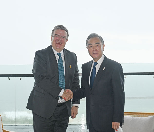 El 16 de noviembre de 2022, hora local, el miembro del Buró Político del Comité Central del Partido Comunista de China (PCCh) y consejero de Estado, Wang Yi, se reunió con el secretario de Relaciones Exteriores de México, Marcelo Ebrard Casaubon, atendiendo la solicitud de este último, al margen de la cumbre del Grupo de los Veinte (G20) en Bali. Las dos partes expresaron por unanimidad que aprovecharían el 50.º aniversario del establecimiento de relaciones diplomáticas entre los dos países como una oportunidad para fortalecer la comunicación y la colaboración estratégicas y enriquecer incesantemente la connotación de la asociación estratégica integral entre China y México.