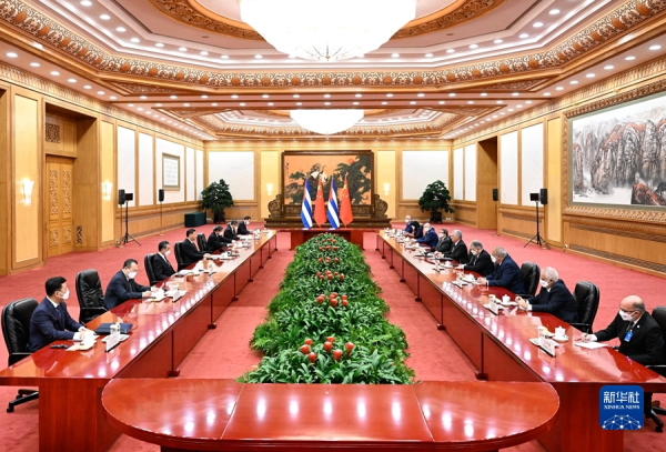 El Secretario General y Presidente Xi Jinping señaló que el Presidente Miguel Díaz-Canel es el primer Jefe de Estado de un país de América Latina y el Caribe(ALC) en visitar China tras el XX Congreso Nacional del PCCh, lo cual ha puesto de pleno manifiesto las relaciones especiales de amistad entre ambos Partidos y países. Cuba fue el primer país del hemisferio occidental en establecer relaciones diplomáticas con la Nueva China, y los lazos sino-cubanos se han convertido en un caso ejemplar de la solidaridad y cooperación entre países socialistas, y de sincero apoyo mutuo entre países en vías de desarrollo. China está dispuesta a trabajar junto con Cuba para profundizar constantemente la confianza mutua política, ensanchar la cooperación práctica, apoyarse mutuamente en los temas tocantes a los respectivos intereses vitales, y fortalecer la coordinación y la colaboración en los asuntos internacionales y regionales, con miras a avanzar de la mano en el camino de la construcción socialista con características propias y profundizar sin cesar las relaciones sino-cubanas en la nueva era.