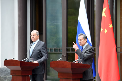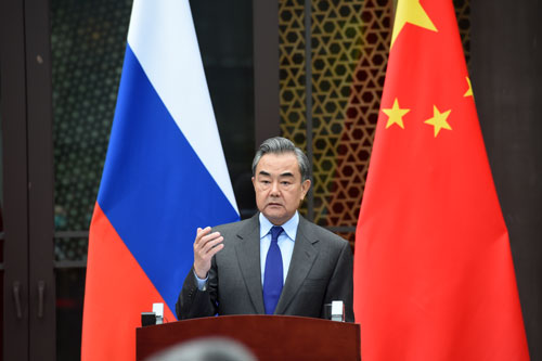 Wang Yi dijo que la razón por la que las relaciones chino-rusas han resistido las pruebas de las vicisitudes de las situaciones internacionales y se han convertido en una fuerza estabilizadora en el mundo actual radica en que las dos partes siempre se han adherido a la no alineación, a la no confrontación, y a la no provocación a terceros; en que siempre respetan los intereses fundamentales del otro, se cuidan y se preocupen de forma mutua y razonable; en que siempre asumen las responsabilidades, defienden la justicia y mantienen firmemente el sistema internacional con las Naciones Unidas como núcleo y el orden internacional basado en el derecho internacional. China pide a todos los países que revisen los propósitos y principios de la Carta de las Naciones Unidas, que aprecien el sistema jurídico internacional construido por todos los países desde la Segunda Guerra Mundial, que practiquen el verdadero multilateralismo, que promuevan la democratización de las relaciones internacionales, y que construyan conjuntamente una comunidad de destino común para la humanidad que supere las diferencias tanto de régimen como de cultura.