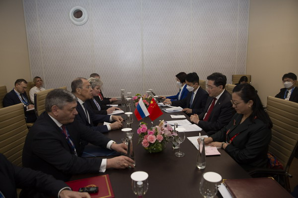 Serguéi Lavrov expresó la voluntad de Rusia de trabajar con China para implementar adecuadamente los consensos alcanzados por los dos jefes de Estado, estrechar los intercambios de alto nivel y planificar adecuadamente la cooperación en diversas áreas. También dijo que tanto Rusia como China son miembros del Grupo de Amigos en Defensa de la Carta de la Organización de las Naciones Unidas (ONU), y que Rusia se encuentra en disposición de reforzar la comunicación estratégica con China para inyectar más estabilidad al sistema internacional. La parte rusa apoya y participará activamente en la Iniciativa para el Desarrollo Global (IDG) y la Iniciativa para la Seguridad Global (ISG), y seguirá fortaleciendo la coordinación y la cooperación entre las dos partes en marcos multilaterales como la Organización de Cooperación de Shanghái (OCS) y los BRICS (Brasil, Rusia, la India, China y Sudáfrica).