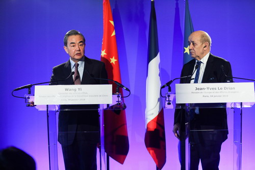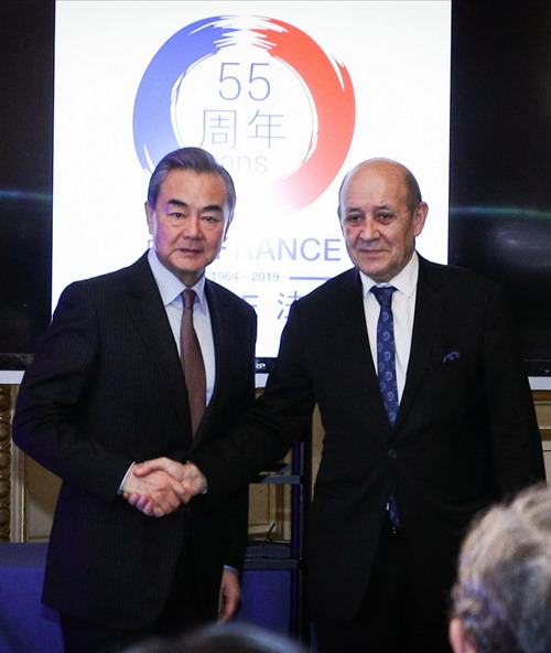 El 24 de enero de 2019, hora local, el Consejero de Estado y Ministro de Relaciones Exteriores, Wang Yi, quien está celebrando la 18ª Consulta de Coordinadores del Diálogo Estratégico China-Francia en París, y el Ministro de Relaciones Exteriores de Francia, Le Drian, asistieron juntos a la ceremonia de lanzamiento de las actividades conmemorativas con motivo del 55° aniversario del establecimiento de relaciones diplomáticas entre China y Francia.