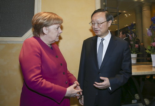 El 16 de febrero de 2019, hora local, la canciller alemana Angela Merkel se reunió con Yang Jiechi, miembro del Buró Político del Comité Central del PCCh y director de la Oficina de la Comisión de Trabajo de Asuntos Exteriore del Comité Central de PCCh, quien se encontraba en Múnich para asistir a la 55ª Conferencia de Seguridad de Múnich.