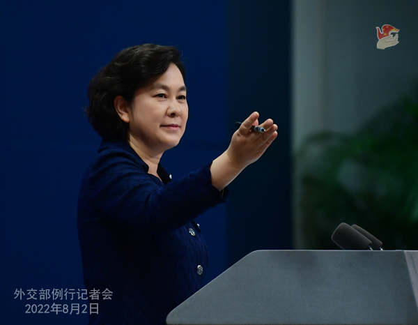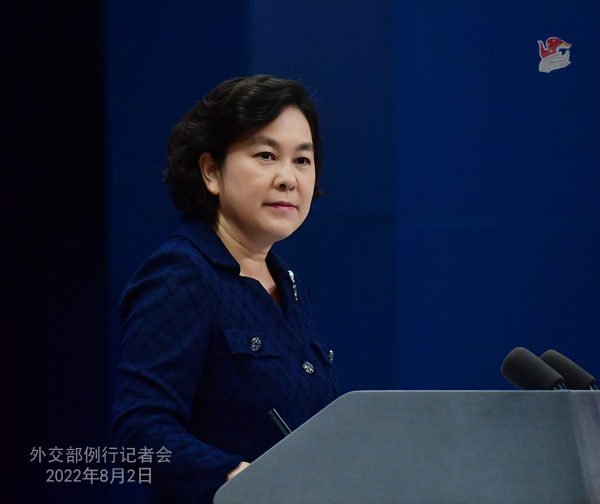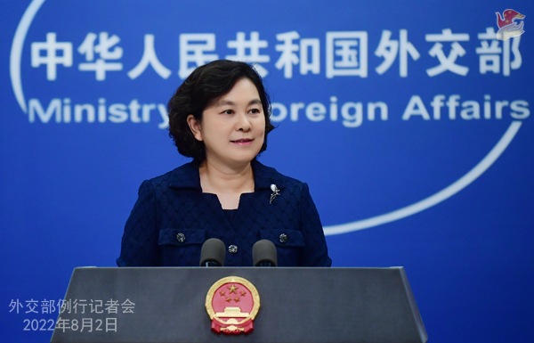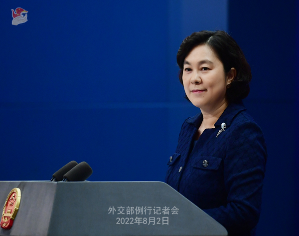 Hua Chunying: China y Estados Unidos mantienen una estrecha comunicación a todos los niveles y a través de diversos canales en Beijing y Washington. La parte china ha expresado repetida e inequívocamente a la parte estadounidense su firme posición de oponerse a la posible visita a Taiwán de la presidenta de la Cámara de Representantes de Estados Unidos, Nancy Pelosi. Esperamos que los funcionarios estadounidenses sean claramente conscientes de la importancia, la naturaleza delicada y la peligrosidad de este asunto.