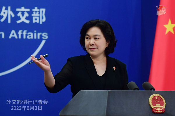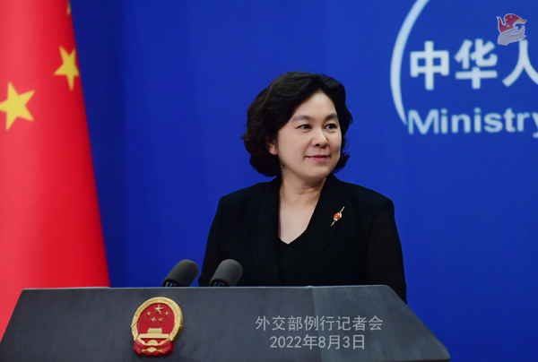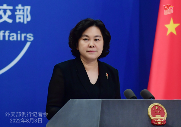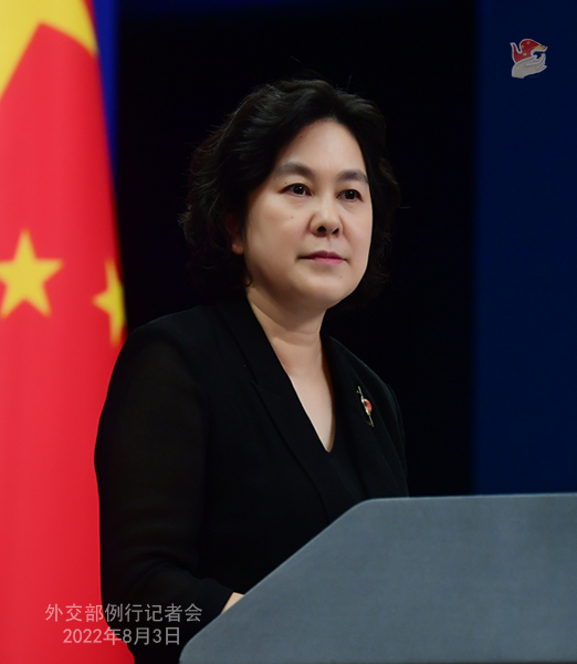 Hua Chunying: La parte china ha expresado claramente su posición seria a través de declaraciones y acciones. Una vez más, la gente ha visto que ciertos políticos estadounidenses, en busca de sus intereses egoístas, han puesto en escena “espectáculos” pasando por alto la paz y la estabilidad regionales y los intereses generales de las relaciones entre China y Estados Unidos. China no solo salvaguarda firme y vigorosamente su propia soberanía e intereses de seguridad, sino que también, al mismo tiempo, defiende la paz y la estabilidad regionales.