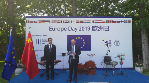 Le vice-ministre des Affaires étrangères Wang Chao a participé le 9 mai 2019 à la réception organisée à l'occasion de la Journée de l'Europe par la Délégation de l'Union européenne (UE) en Chine. A cette occasion, il a procédé à un échange de vues sur les relations sino-européennes et les échanges bilatéraux, avec Nicolas Chapuis, ambassadeur de l'UE en Chine, et Basil Vasilica Constantinescu, ambassadeur de Roumanie en Chine, dont le pays assume la présidence tournante de l'UE.