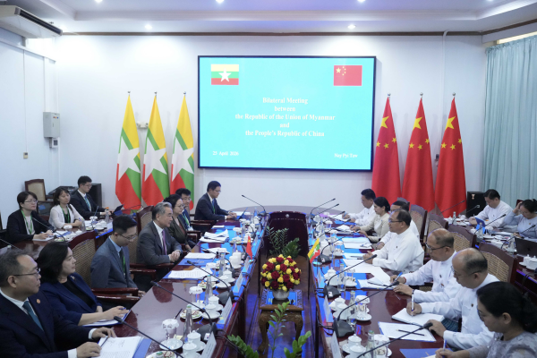 Le 25 avril 2026, heure locale, Wang Yi, membre du Bureau politique du Comité central du Parti communiste chinois et ministre chinois des Affaires étrangères, a tenu des entretiens avec le ministre des Affaires étrangères du Myanmar, Tin Maung Swe, à Nay Pyi Taw.