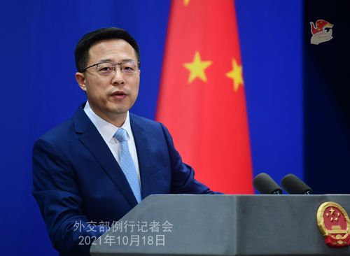 HRTN : Le 15 octobre, le Ministère russe des Affaires étrangères a publié une information selon laquelle le Vice-Ministre russe des Affaires étrangères Sergueï Riabkov a déclaré lors de sa rencontre avec l'Ambassadrice du Royaume-Uni en Russie Deborah Bronnert que la Russie estimait que le partenariat trilatéral en matière de sécurité (AUKUS) noué par les États-Unis, le Royaume-Uni et l'Australie ne contribuerait pas à promouvoir la sécurité et la stabilité internationales et créerait des difficultés dans le domaine de la maîtrise des armements. La partie russe a dit espérer que les États membres de l'AUKUS pourront respecter strictement leurs engagements en matière de non-prolifération nucléaire. Quels sont les commentaires de la Chine là-dessus ?