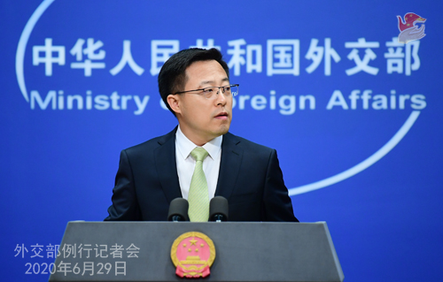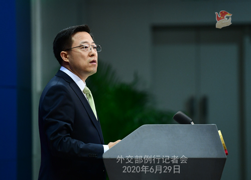 Zhao Lijian : La législation sur la sécurité nationale pour Hong Kong est une affaire intérieure de la Chine, et aucun pays étranger n'a le droit d'y intervenir. Le gouvernement chinois est fermement résolu à sauvegarder la souveraineté nationale, la sécurité et les intérêts en matière de développement, à mettre en œuvre le principe d'« un pays, deux systèmes » et à s'opposer à l'ingérence de toute force extérieure dans les affaires de Hong Kong. Les tentatives des États-Unis d'entraver l'avancement de la législation chinoise sur la sécurité nationale pour Hong Kong par de prétendues sanctions ne réussiront jamais.