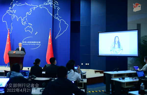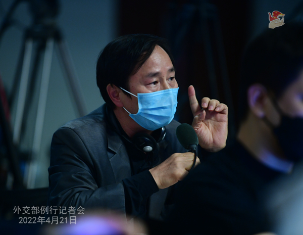 China Daily : Le porte-parole du Département d’État américain a déclaré le 20 avril que la secrétaire d’État adjointe Wendy Sherman a rencontré à Bruxelles le secrétaire général délégué de l’OTAN Mircea Geoană et les représentants permanents de l’OTAN et a fait part des préoccupations des États-Unis quant au soutien de la Chine à l’agression de la Russie, notamment par l’amplification de la désinformation russe sur l’OTAN et la guerre de la Russie en Ukraine. Avez-vous un commentaire à faire ?