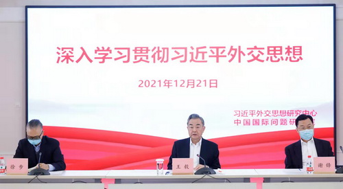Le 21 décembre 2021, le conseiller d’État et ministre des Affaires étrangères Wang Yi a inspecté le Centre d’étude de la pensée de Xi Jinping sur la diplomatie et l’Institut d’études internationales de Chine (CIIS). Wang Yi s’est également entretenu avec des représentants du Centre d’étude et du CIIS.