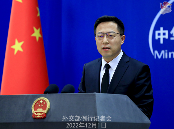 赵立坚:美方言论挑拨离间、颠倒黑白,具有不可告人的政治目的,我们坚决反对。疫情发生近三年来,中国政府始终把人民群众生命安全和身体健康放在第一位,坚持人民至上、生命至上,因时因势优化完善防控措施,统筹疫情防控和经济社会发展取得重大积极成果。事实证明,中国疫情防控政策是科学、正确、有效的。