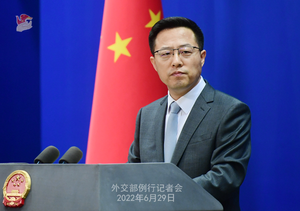 赵立坚:七国集团罔顾中方严正立场和坚决反对,利用峰会公报鼓吹“民主对抗威权”叙事,粗暴干涉中国内政,攻击抹黑中国,煽动对抗情绪。这充分说明,七国集团无意在平等和相互尊重基础上开展对话合作,而是抱守冷战思维,固守意识形态偏见,基于“小圈子”利益搞“集团政治”。