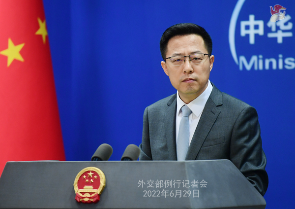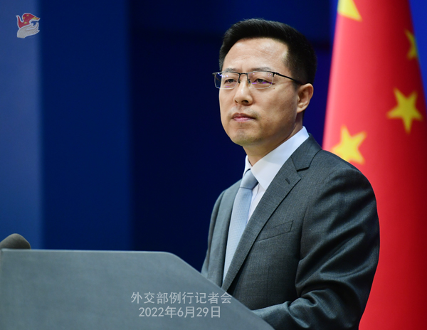 总台央视记者:6月28日,第48届七国集团峰会发表公报,14处提及中国,对香港、新疆、人权、东海、南海以及台海和平稳定等说三道四。中方对此有何评论?