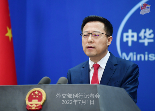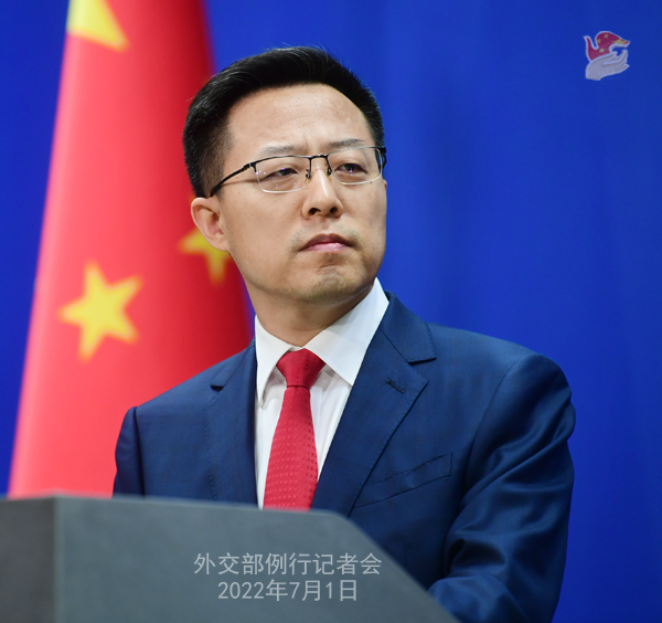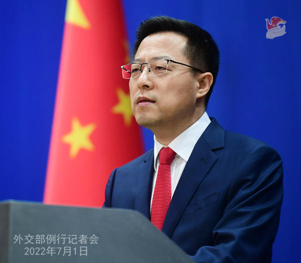 赵立坚:今天是香港回归祖国25周年庆典日。习近平主席赴香港出席香港回归祖国25周年大会暨香港特别行政区第六届政府就职典礼,并视察香港特别行政区,受到香港社会各界热烈欢迎。