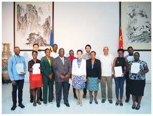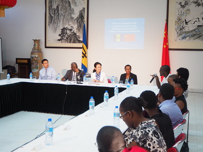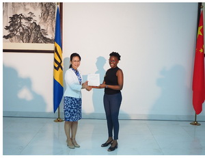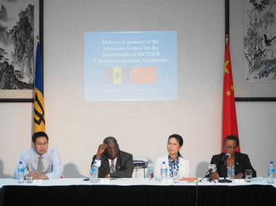2017年8月22日,驻巴巴多斯使馆举行2017/2018年度中国政府奖学金授予仪式,中国驻巴巴多斯大使王克、巴教育、科学、技术和创新部长琼斯、外交和外贸部长麦克林、教育部常秘钱德勒、外交和外贸部常秘亨弗里、副常秘布尔布利亚等政府官员以及10名巴奖学金获得者和家属、曾赴华留学生代表共约50人出席。