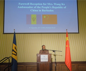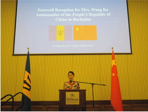 2017年9月4日,驻巴巴多斯使馆举行驻巴巴多斯大使王克离任招待会,巴首席大法官吉布森爵士,外交和外贸部长麦克林等多位内阁部长,执政党和反对党议员,国防军总参谋长,各国和国际组织驻巴使节及代表,巴工商、文教、体育等各界名流,使馆友人以及在巴中资企业、华侨华人联谊会、西印度大学凯夫希尔校区孔子学院、援巴医疗队等逾200人出席招待会。