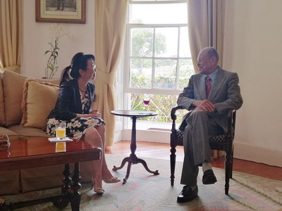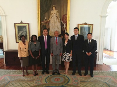 2017年9月7日,驻巴巴多斯大使王克离任拜会巴代理总督格里夫斯。