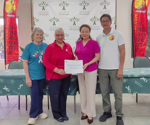 2025年9月26日,驻巴哈马大使严家蓉到访巴癌症协会总部,会见该会主席威尔金森和前任主席威廉姆斯·谢。巴哈马中国龙舟协会主席陈玉霞及当地华人社区代表陪同。
