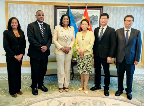 2025年10月16日,驻巴哈马大使严家蓉会见巴国家旅游局局长邓库姆。