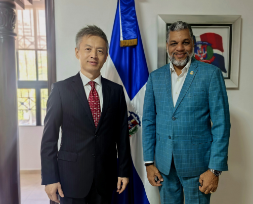 2025年9月11日,驻多米尼加大使陈鲁宁在中美洲议会多籍议员团驻地会见议会副议长戈里,就双方友好合作关系交换意见。议会领导层秘书赫尔曼及多籍议员代表在座。