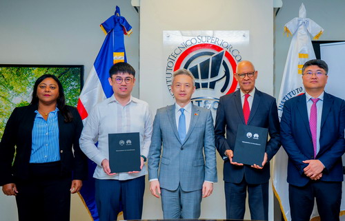 2025年12月10日,驻多米尼加大使陈鲁宁出席多米尼加社区高等技术学院(ITSC)与华为签署战略合作谅解备忘录仪式并致辞。