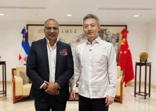 2025年12月11日,驻多米尼加大使陈鲁宁应约会见拉美发展管理中心(CLAD)分管墨西哥、中美洲和加勒比地区的办事处主任洛佩斯,就中拉关系等进行友好交流。