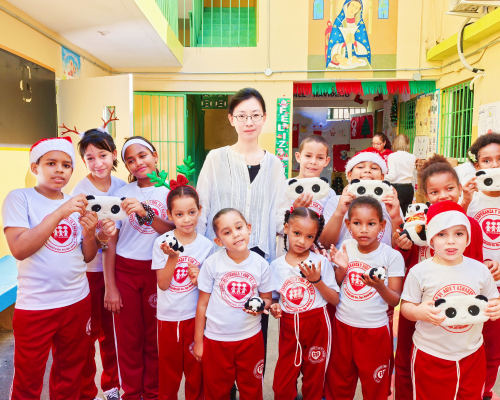 2025年12月16、17日,驻多米尼加大使夫人、驻多使团夫人协会会长王鹤鸣率协会主要成员和使馆青年外交官分别看望慰问在贫民区的两所小学校师生,送去食品和学习用品等爱心礼物,并向大家致以节日的问候。