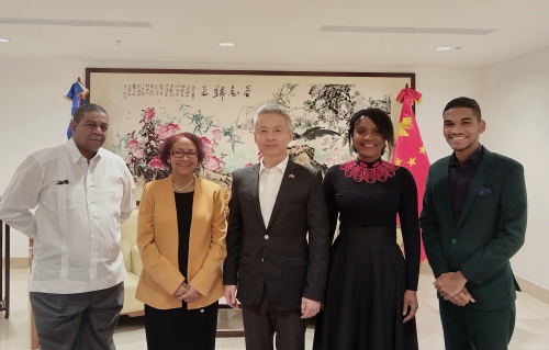 2025年12月17日,驻多米尼加大使陈鲁宁会见多广泛阵线主席特蕾莎,就中多关系、党际交往等进行友好交流。