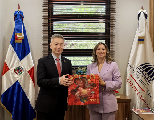 2026年2月13日,驻多米尼加大使陈鲁宁拜会多新任妇女部部长雷耶斯,就两国妇女领域合作等进行友好交流。