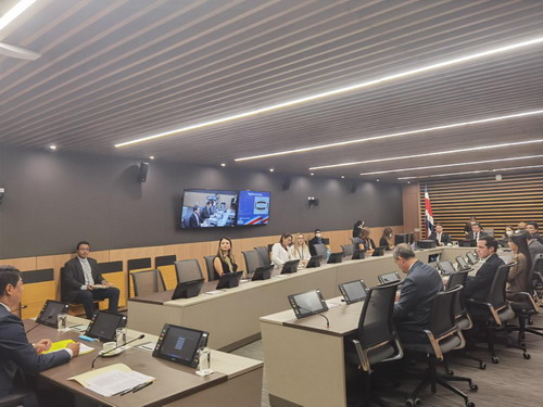 2022年8月10日,驻哥斯达黎加大使汤恒在哥立法大会外委会就中国外交政策、中哥关系、台湾问题发表专题演讲。外委会主席门多萨、外委会委员及各政党议员代表出席活动。