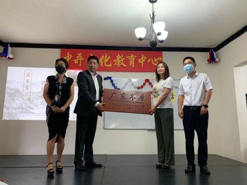 活动期间,汤大使与中哥文教中心董事长宋晓宁女士共同为广东省人民政府侨务办公室捐赠的“广东书屋”揭牌。