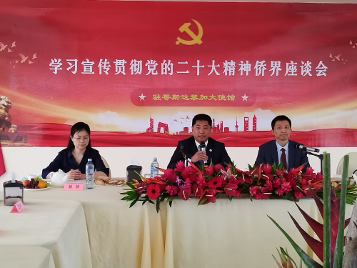 2022年11月11日,驻哥斯达黎加使馆举行学习宣传贯彻党的二十大精神侨界座谈会,驻哥斯达黎加大使汤恒宣讲党的二十大精神并结合哥侨界实际就下一阶段学习宣传贯彻工作提出具体要求。旅哥主要侨社负责人、领事协助志愿者代表共40余人参加活动。