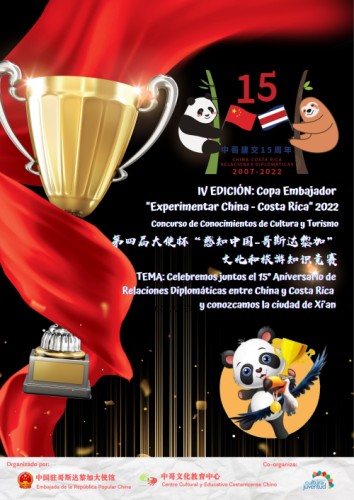 2022年11月30日,由驻哥斯达黎加使馆、哥文化和青年部、中哥文化教育中心合作举办第四届大使杯“感知中国-哥斯达黎加”文化和旅游知识竞赛线下总决赛成功举行。驻哥斯达黎加大使汤恒、哥文化和青年部副部长卡斯特罗、中哥文教中心董事长宋晓宁等出席。