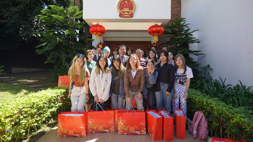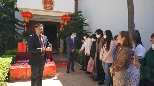 汤大使强调,党和政府时刻牵挂海外同胞的健康和安全,新的一年,驻哥使馆将一如既往践行“外交为民”宗旨,帮助旅哥侨胞办实事、解难题,积极维护大家的合法权益,始终做大家的坚强后盾。参加仪式的侨团、留学生等代表衷心感谢党和政府的关心关爱以及使馆长期以来为旅哥同胞提供的周到服务,表示慰问品和“新春暖心包”让身处异乡的他们感受到了祖国的温暖,大家将牢记使馆嘱托,充分发挥优势,同祖国人民一道,为中华民族伟大复兴增光添彩。