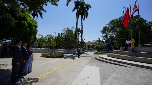 2023年3月17日,驻哥斯达黎加大使汤恒应邀赴哥阿拉胡埃拉省阿特纳斯市参访。阿市市长阿吉拉尔、副市长罗德里格斯、立法大会议员西巴哈等陪同。