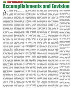 2024年1月18日、19日,驻格林纳达大使韦宏添在格林纳达主流媒体“今日格林纳达”网、《信息报》《新今日报》发表署名文章《成就与展望》,祝贺格即将迎来独立50周年,回顾中格复交19年来双边关系发展成果并展望两国友好合作未来。