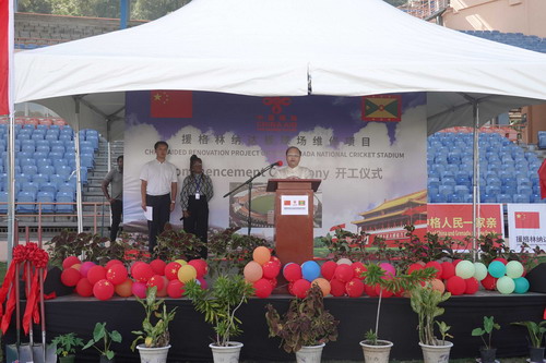 2024年2月27日,中国援格林纳达板球场维修项目举行开工仪式。驻格林纳达大使韦宏添,格代总理、动员、实施和转型部长威廉姆斯,青体部长拉克雷特,中方项目组(上海宝冶)员工、格各界代表等约60人出席。格国家电视台到场报道。
