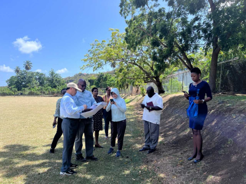 2024年3月21日,驻格林纳达大使韦宏添与格林纳达总理米切尔特别助理莱西、选区办公室代表巴索罗姆等一起赴圣戴维教区拉萨杰斯、贝尔维尤、马尔蒙三个农村社区运动场实地考察,为驻格使馆拟与当地社区实施的小型儿童游乐设施项目进行选址,并就施工方案、质量、工期等进行沟通交流。