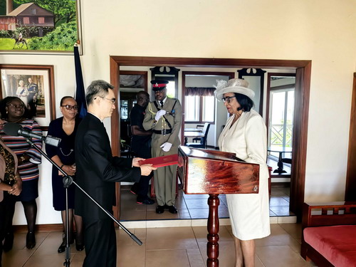 2025年9月30日,新任驻格林纳达大使杨舒在格总督府向总督拉格雷纳德递交国书。
