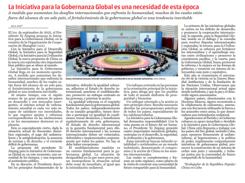 2025年9月4日,驻古巴大使华昕在古共中央机关报《格拉玛报》发表署名文章《全球治理倡议是时代所需》,宣介全球治理倡议。全文如下: