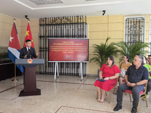 2025年11月21日,驻古巴使馆举行向古巴国家体育运动娱乐委员会赠车仪式,驻古巴大使华昕、古体委主席本托、古巴奥委会主席理查兹等出席。