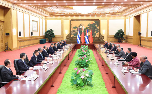 2025年9月4日上午,中共中央总书记、国家主席习近平在北京人民大会堂会见来华出席纪念中国人民抗日战争暨世界反法西斯战争胜利80周年活动的古巴共产党中央委员会第一书记、古巴国家主席迪亚斯-卡内尔。