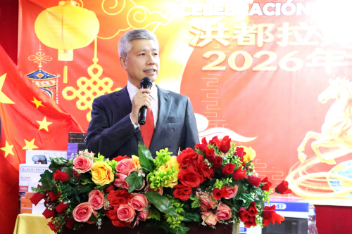 于波大使向旅洪全侨致以新春祝福,向洪各界友好介绍马年新春的美好寓意,回顾中洪建交近三年来各领域合作取得的丰硕成果,勉励侨胞们砥砺“十五五”,继续为促进中洪友好、推动祖国统一大业贡献力量。