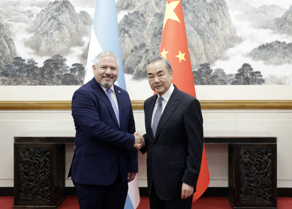 2023年11月1日,中共中央政治局委员、外交部长王毅在北京会见洪都拉斯外长雷纳。