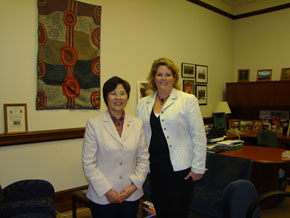 | 朱桃英总领事与曼省省督哈沃德(右一) | 朱总与曼省财政厅副厅长格雷(右一) |