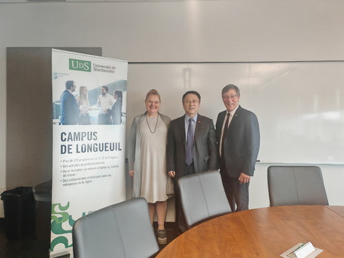 2025年12月18日,驻蒙特利尔总领事戴玉明拜会舍布鲁克大学校长让-皮埃尔·佩罗,就促进中方与舍布鲁克大学合作和师生交流等问题交换了意见。该校负责科研与国际事务的副校长莱萨德、朗格伊校区校长奥布里奥等在座。