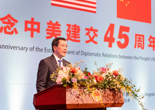 郭总领事在致辞中强调,中美关系45年发展历程有很多值得汲取的智慧、勇气和远见。当前中美关系是世界上最重要的双边关系。习近平主席提出的相互尊重、和平共处、合作共赢三原则,是新时期中美正确相处的根本之道。总领馆愿同领区各界人士一道,以落实两国元首会晤重要共识为战略引领,加强沟通交流,深化务实合作,推动中美关系稳定、健康、可持续发展。