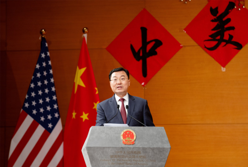 晚上好!欢迎大家来使馆做客,共同纪念中美留学45周年,共同迎接中国新春佳节。