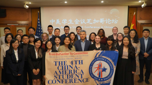 2024年6月5日,驻芝加哥总领事赵建会见参加第四届中美学生会议芝加哥论坛的两国青年代表,并同他们进行交流。